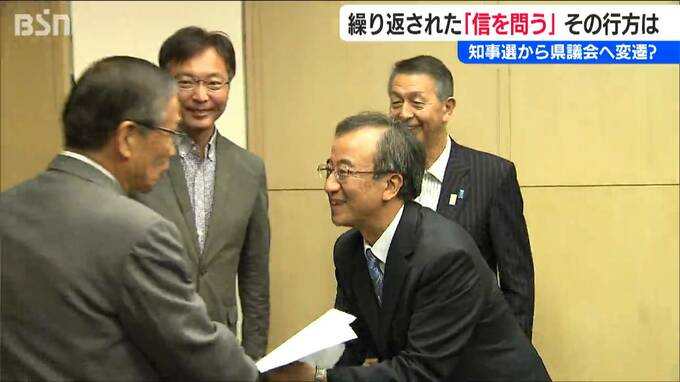 このとき、たとえ任期途中であっても「知事の職を賭けて信を問う」と述べたのです。