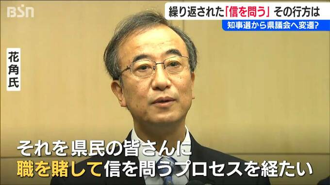 「信を問う」という言葉を公の場で発したのは、出馬の2日前のことでした。県内市長の有志17人が、花角氏を自主的に応援する組織を立ち上げた日の発言です。