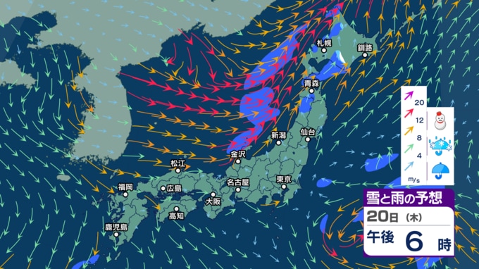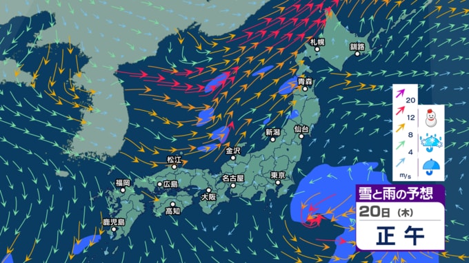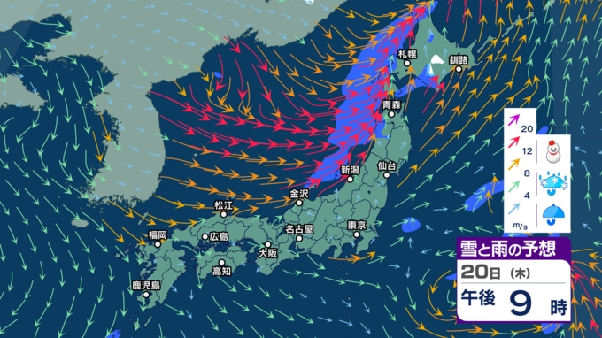 雷を伴い強い雨が降る所も 北日本~西日本で落雷や急な強い雨などに注意 21日は北日本中心に雪の所も【3時間ごとの雨雪と風のシミュレーション・20日正午更新】