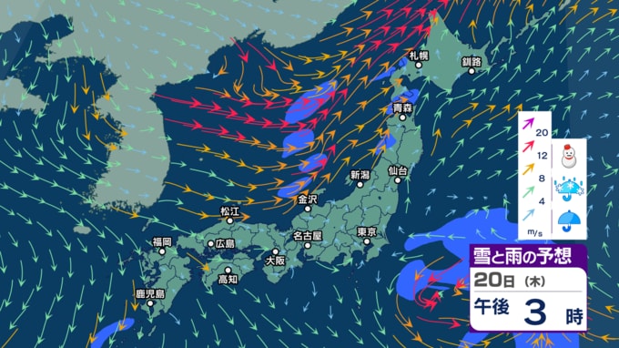 3. 雷を伴い強い雨が降る所も 北日本~西日本で落雷や急な強い雨などに注意 21日は北日本中心に雪の所も【3時間ごとの雨雪と風のシミュレーション・20日正午更新】