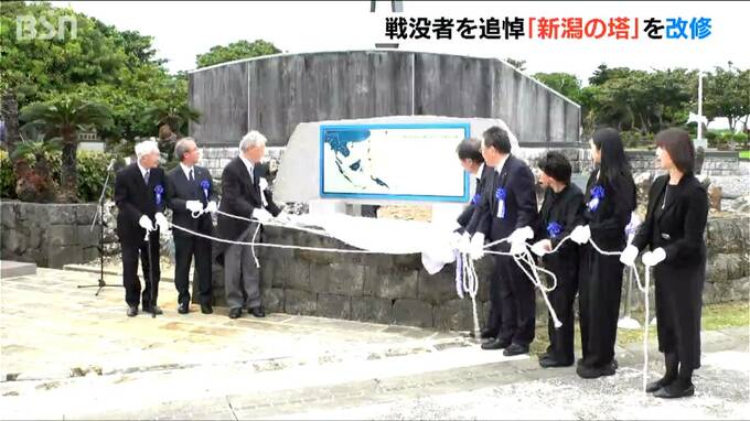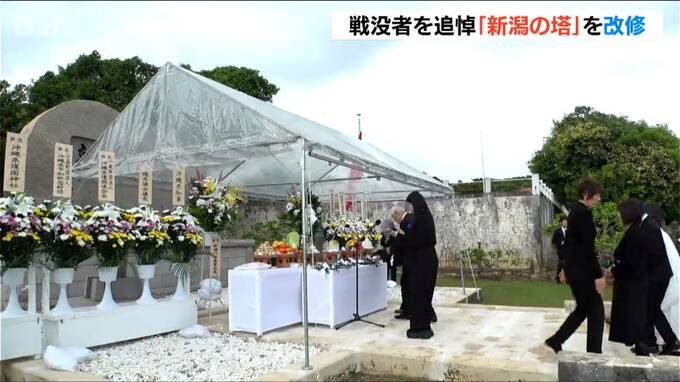 太平洋戦争中に沖縄などで戦死した新潟県出身者を追悼する、沖縄県糸満市の『新潟の塔』が改修され、17日に除幕式が行われました。