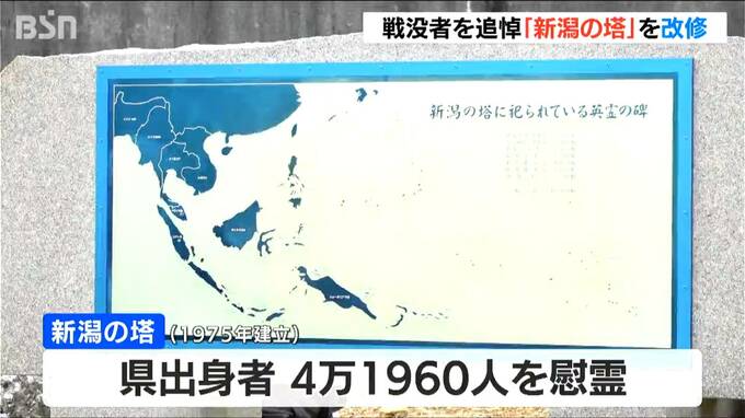 糸満市の平和祈念公園にある『新潟の塔』は、沖縄や南方で犠牲となった県出身者4万1960人を慰霊するため、1975年に建てられたもので、戦後80年の節目に、次世代へつなぐために改修されました。