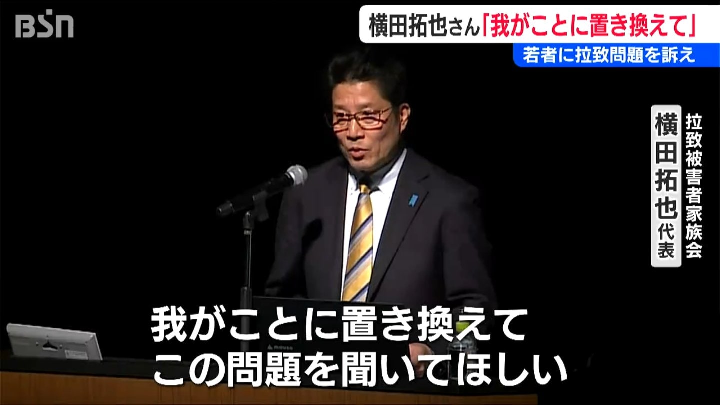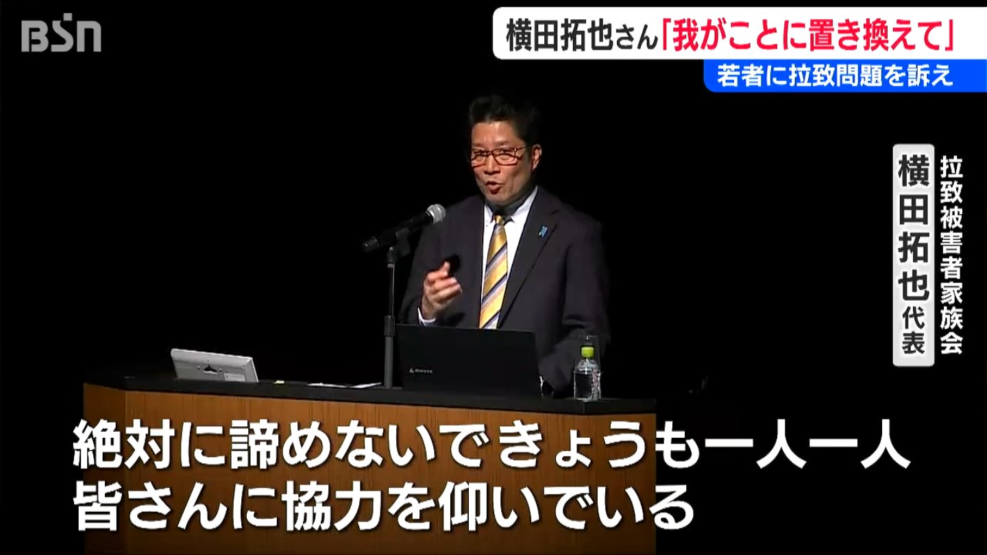 拉致被害者・横田めぐみさんの弟の横田拓也さんが、19日に新潟県糸魚川市で講演し「我が事に置き換えてこの問題を聞いてほしい」と訴えました。