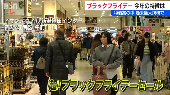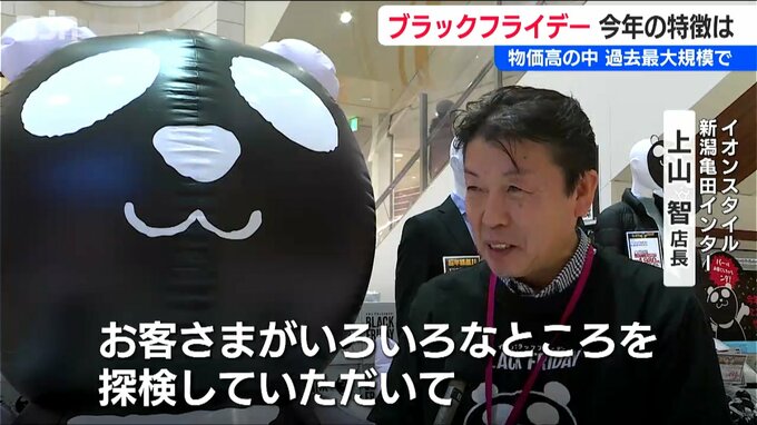 【イオンスタイル 新潟亀田インター店 上山智 店長】「お客さんの買う点数自体は少しずつ減っている。お客様がいろいろなところを探検していただいて、いろいろな宝を見つけていただく。そういった形で私たちもブラックフライデーを盛り上げていきたい」