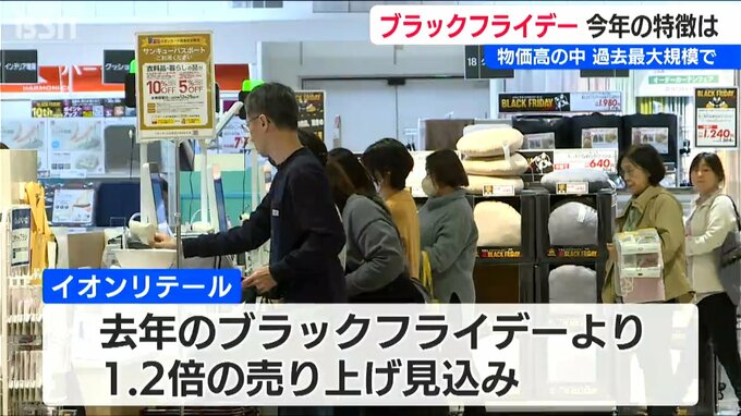 客の買い控えが続く中、イオンリテールは全体で去年のブラックフライデーより1.2倍の売り上げを見込んでいます。