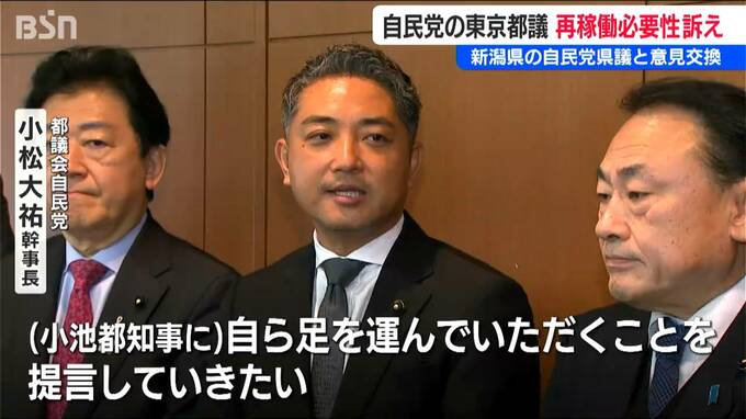 電力消費地・東京の都議員が20日午前に新潟県を訪れ、原発再稼働の必要性を訴えました。