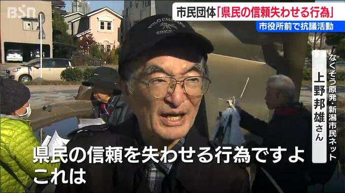 19日に新潟市の中原八一市長が、新潟県の花角英世知事に「県民の意思を確認する方法は県議会がもっともふさわしい」と伝えたことを受けて、市民団体が20日に抗議活動を行いました。