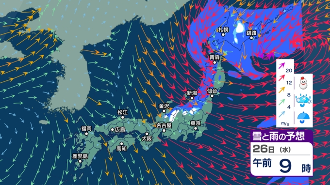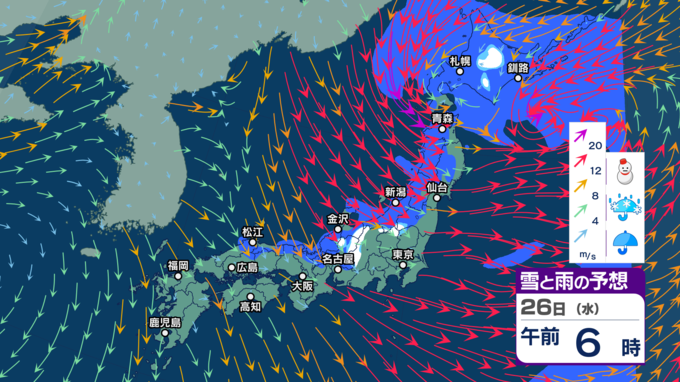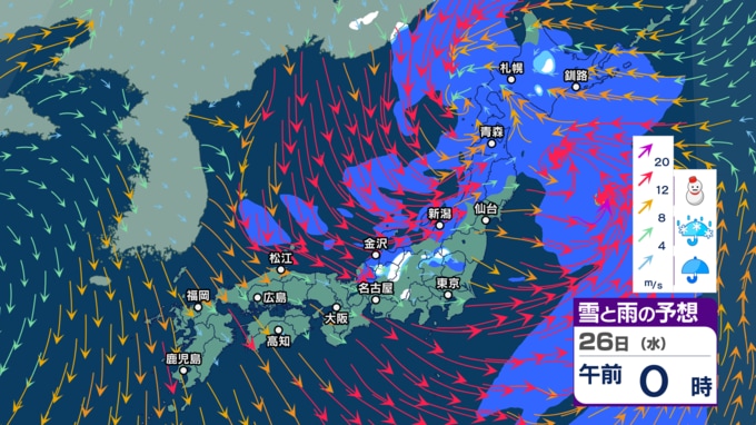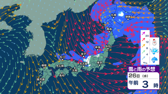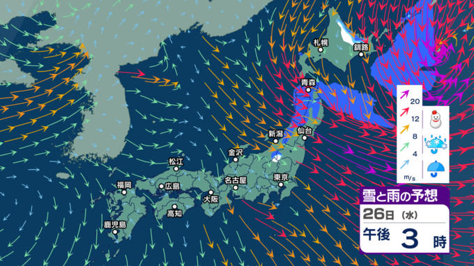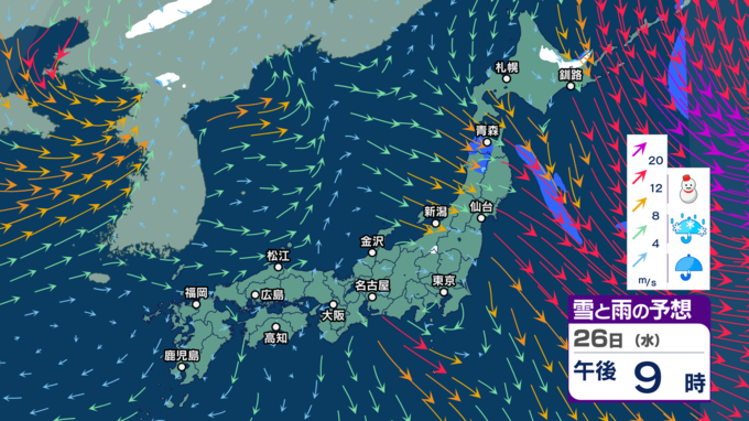 “今年最後の3連休”はお出かけ日和となる所も 連休明けは北日本から東日本の日本海側中心に荒れた天気に?【3時間ごとの雨雪と風のシミュレーション・21日午後10時更新】 2025年11月21日(金) 22:00 26日(水)の雨・雪と風のシミュレーション