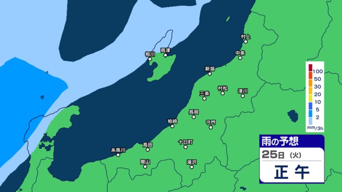 新潟県内は24日夜のはじめ頃~26日にかけて落雷や急な強い雨などに注意 強い寒気流入で大気の状態が不安定に【今後の雨のシミュレーション・24日正午更新】