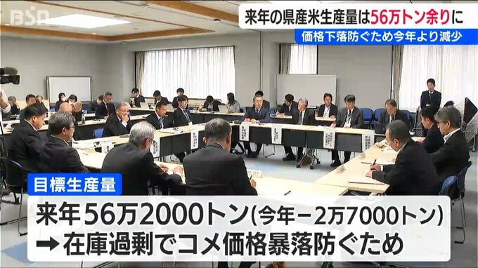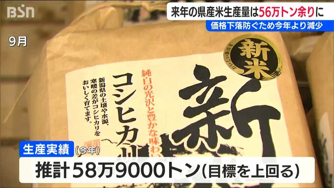 全国的にも生産量が大幅に増える見通しで、在庫が過剰になることや、米価が暴落して農家の経営状況に影響を及ぼすことを防ぐため2026年は、2025年より2.7万トン少ない56.2万トンと定められました。