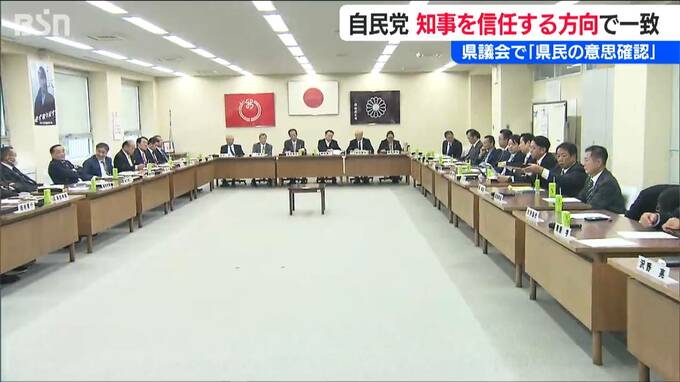 『信を問う場は県議会』とした21日の知事臨時記者会見を受けて開かれた自民党は25日に臨時党議を開き、知事を信任する方向で対応していくことが全会一致で決まったといいます。