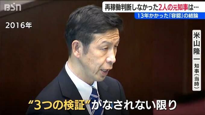 泉田氏の路線を受け継いだ米山氏は『3つの検証』の枠組みを作りましたが、在職中に再稼働議論を始めるまでには至らず、『3つの検証』は花角英世知事へと引き継がれ、2023年に報告書が取りまとめられます。