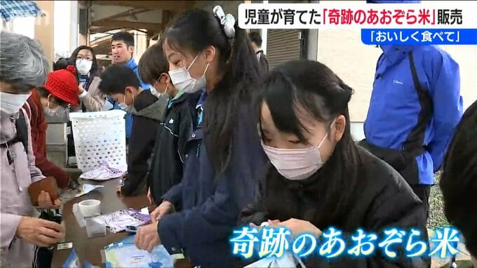 夏の猛暑を乗り越えたことにちなんで『奇跡のあおぞら米』と名付けられたコメの販売活動を通して、子どもたちは、お金の大切さや働くことの大変さや、農業について理解を深めていました。