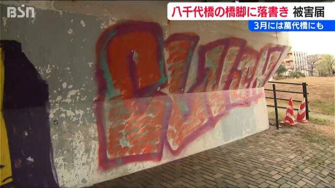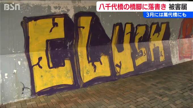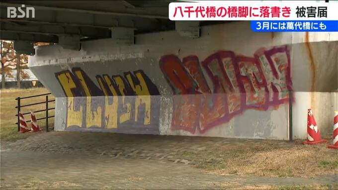新潟市の信濃川に架かる八千代橋の橋脚に落書きが見つかり、26日に新潟市は警察へ被害届を提出しました。