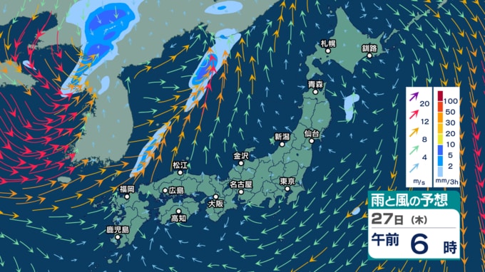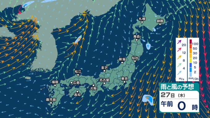 広い範囲で荒れた天気に? 西日本~東日本では27~28日にかけて落雷や急な強い雨などに注意 西日本の広い範囲で黄砂も飛来か【今後の雨と風・黄砂のシミュレーション・26日午後9時更新】