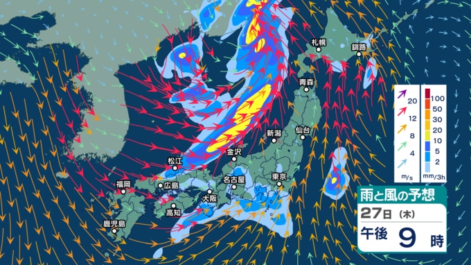 新潟県内はあす27日夜のはじめ頃から28日にかけて落雷や竜巻などの激しい突風、急な強い雨などに注意【今後の雨と風のシミュレーション・26日午後9時更新】 | 新潟のニュース・天気|BSN NEWS|BSN新潟放送
