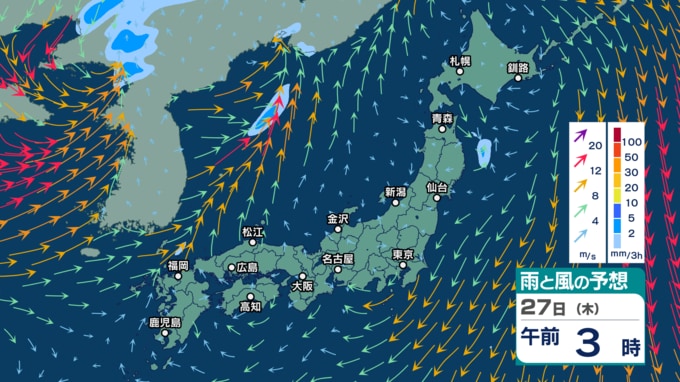 3. 広い範囲で荒れた天気に? 西日本~東日本では27~28日にかけて落雷や急な強い雨などに注意 西日本の広い範囲で黄砂も飛来か【今後の雨と風・黄砂のシミュレーション・26日午後9時更新】