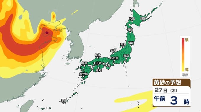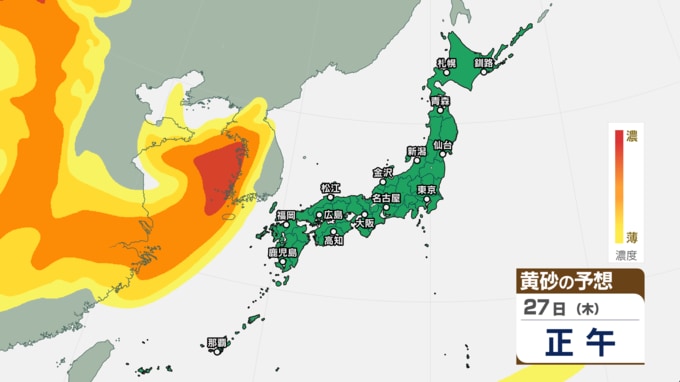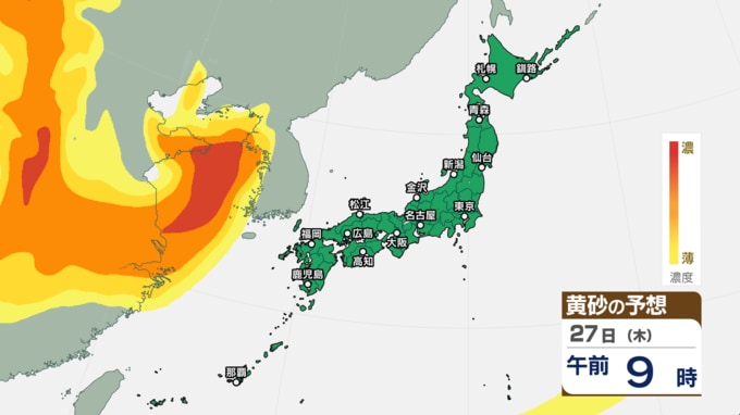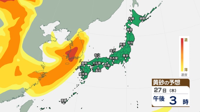 【黄砂情報】あす26日にかけて南西諸島と西日本を中心に黄砂が飛来か  アレルギーや呼吸器系疾患の人は注意を【黄砂の最新シミュレーション・25日午前11時現在】 | 新潟のニュース・天気|BSN NEWS|BSN新潟放送