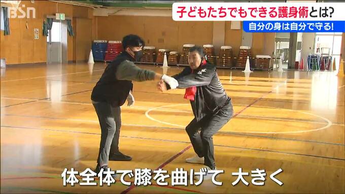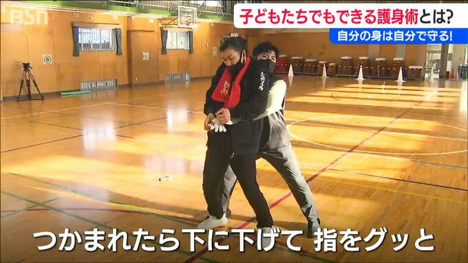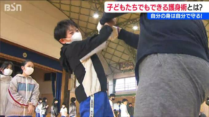 新潟市北区の木崎小学校の6年生およそ70人が27日午後『護身術』を学びました。