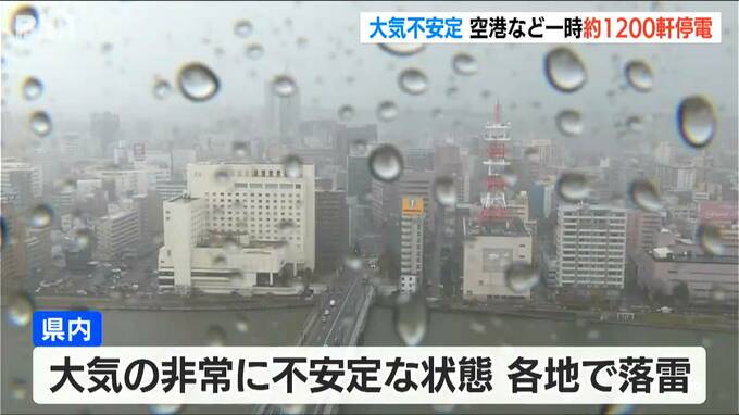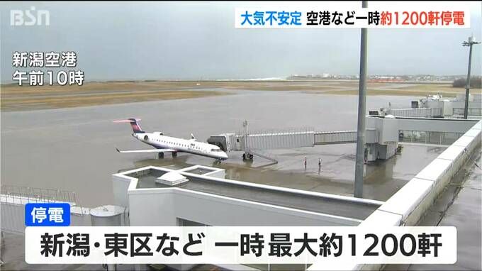 落雷が原因とみられる停電が発生し、新潟市東区など県内で最大1200軒が停電しました。新潟空港事務所によりますと、空港ターミナルの一部が停電し、チェックイン手続きができず出発便が遅れるなどの影響が出ました。
