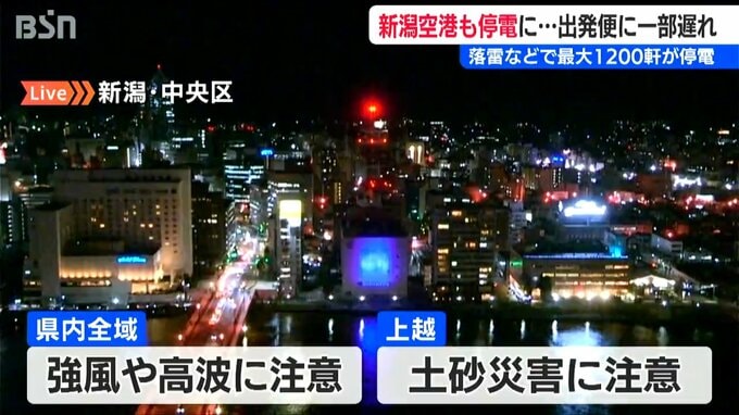 落雷が原因とみられる停電も発生し、新潟市 東区など県内で最大1200軒が停電しました。