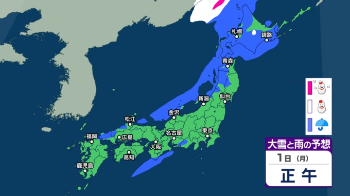 【気象情報】西日本~北日本では2日にかけて落雷や急な強い雨などに注意 3日以降は日本海側を中心に雪 西日本日本海側でも積雪か【今後の雨と雪のシミュレーション・30日正午更新】