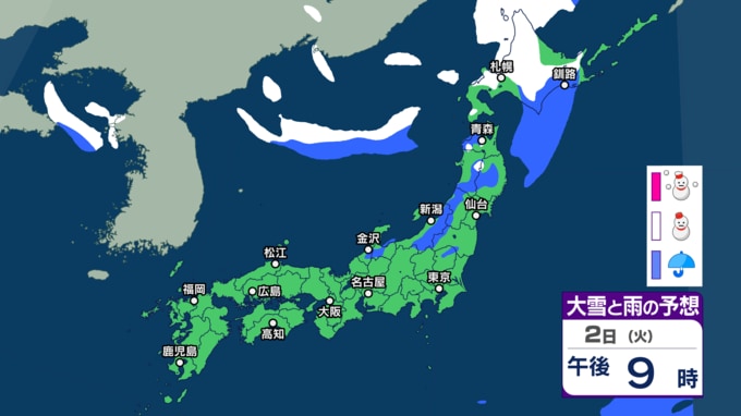 【気象情報】西日本~北日本では2日にかけて落雷や急な強い雨などに注意 3日以降は日本海側を中心に雪 西日本日本海側でも積雪か【今後の雨と雪のシミュレーション・30日正午更新】 2025年11月30日(日) 12:00