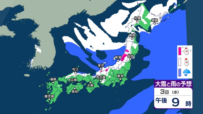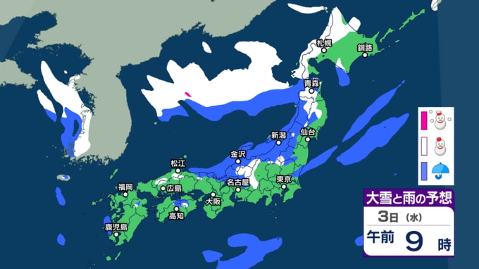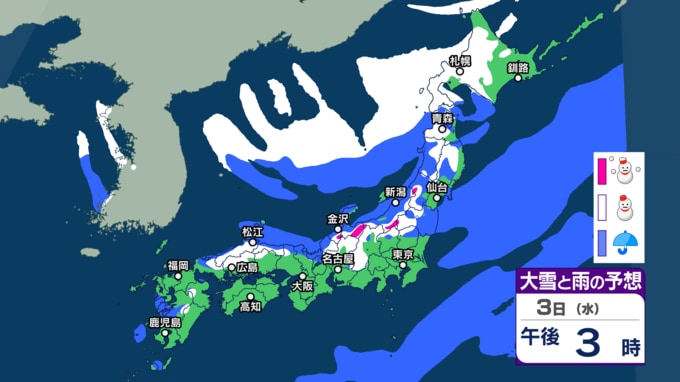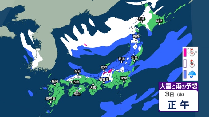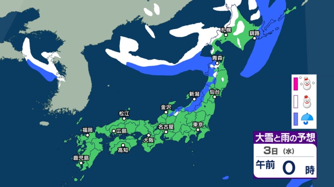 3. 【気象情報】西日本~北日本では2日にかけて落雷や急な強い雨などに注意 3日以降は日本海側を中心に雪 西日本日本海側でも積雪か【今後の雨と雪のシミュレーション・30日正午更新】