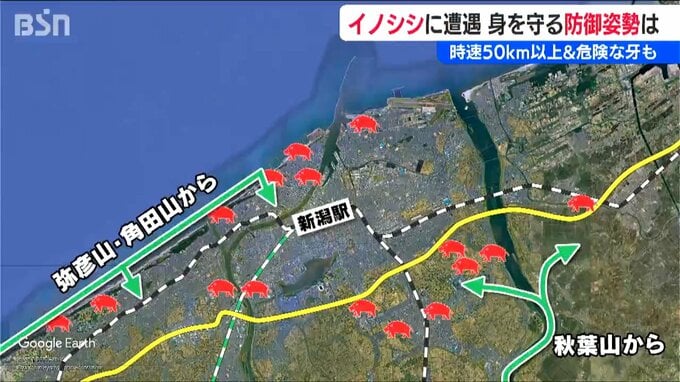 新潟県の鳥獣被害対策支援センターは、イノシシは2つのルートで新潟市に入ってきているとみています。