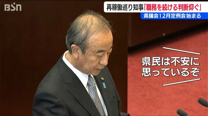 2日に始まった県議会12月定例会。知事の所信表明演説が注目される中、最初に切り出したのが、容認の判断を示した再稼動問題についてでした。