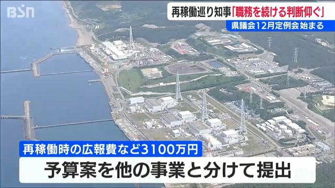 県は、議会に原発が再稼働した場合に国から交付される3100万円を財源として、安全対策の広報費などを計上した予算案を他の事業と分けて提出。また知事は、再稼働容認を表明した自らの信任・不信任を問うとしています。