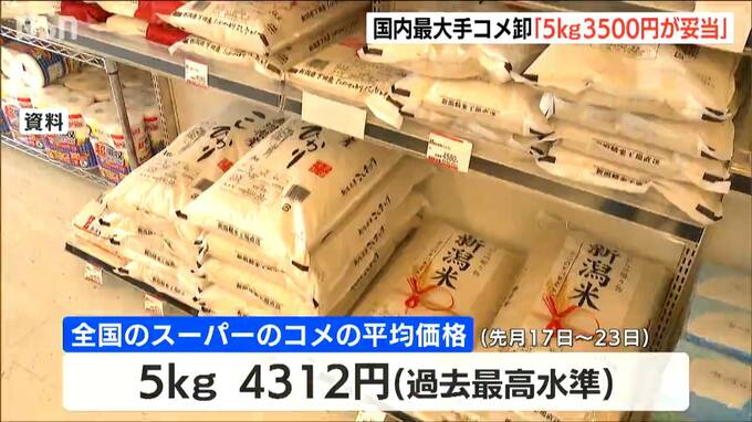 全国最大のコメ卸の代表が新潟県 新発田市で講演し、コメの価格は5キロ3500円が妥当との見方を示しました。
