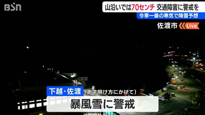 下越では3日の夜はじめ頃から4日の明け方にかけて、佐渡では4日未明から明け方にかけて、暴風雪に警戒が必要です。