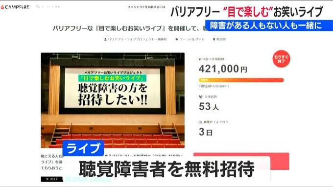 今回の『目で楽しむお笑いライブ』では、聴覚障害者を無料で招待します。