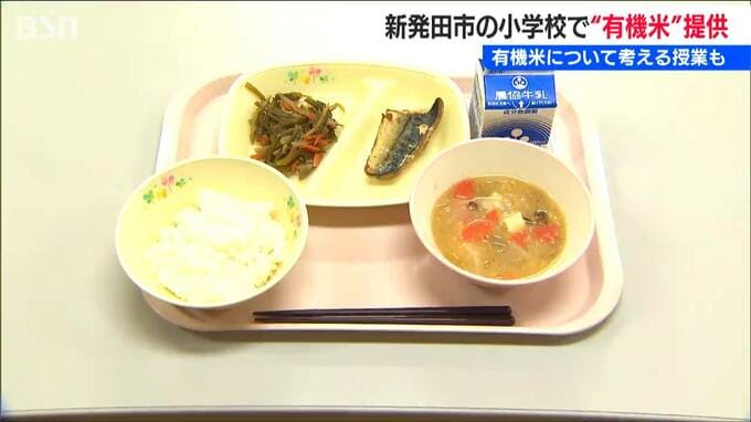 この日の新発田市内の小中学校では、有機米の給食が一斉に提供されました。