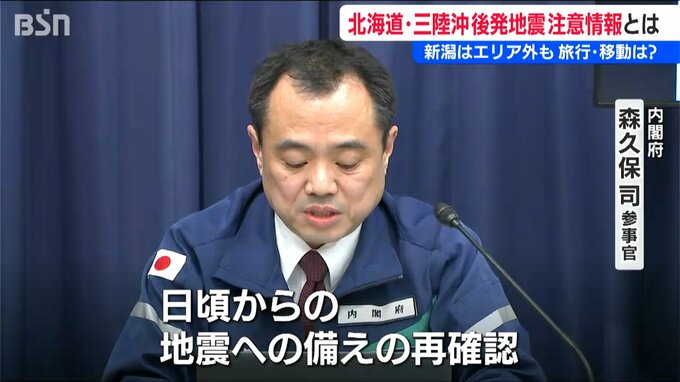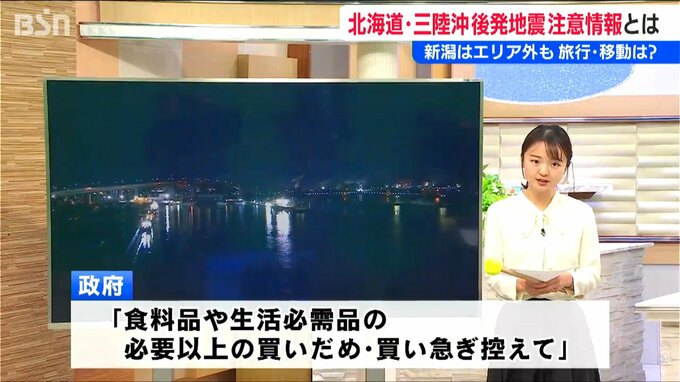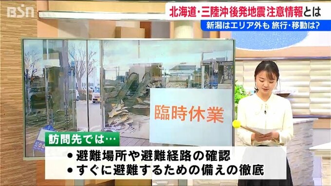 また、対象エリアへの旅行や移動等については行動を制限するものではないとした上で、対象エリア内の海沿いの地域などへ出かける予定は延期することも検討し、訪れた際には避難場所や避難経路の確認等、すぐに避難するための備えを徹底するよう呼び掛けています。