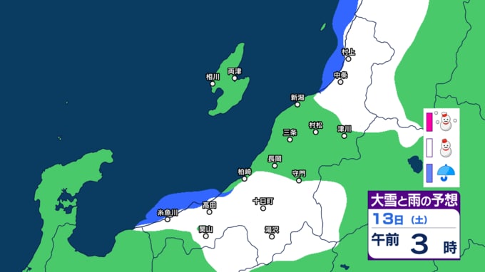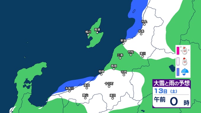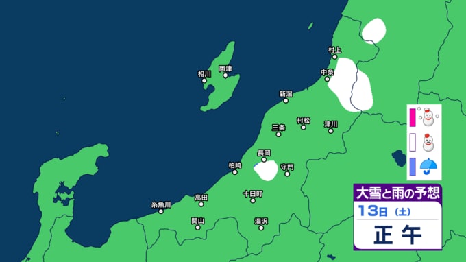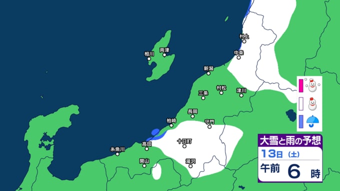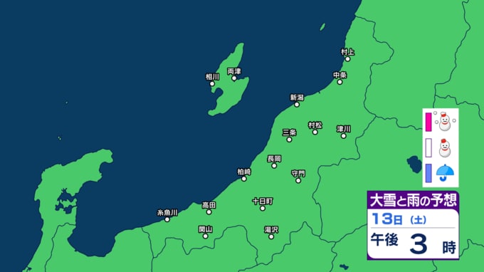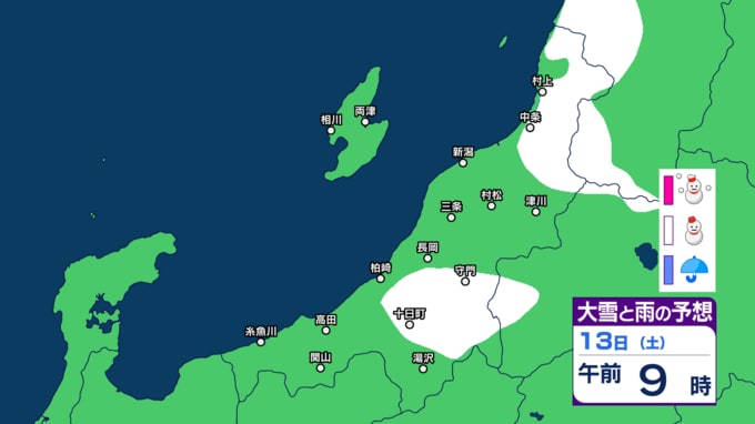 新潟県内は明日10日未明~夕方にかけて落雷や竜巻などの激しい突風、ひょうに注意 12日(金)は平地でも雪か【今後の雨と雪のシミュレーション・9日午後9時更新】 2025年12月9日(火) 21:00 13日(土)の雨と雪のシミュレーション