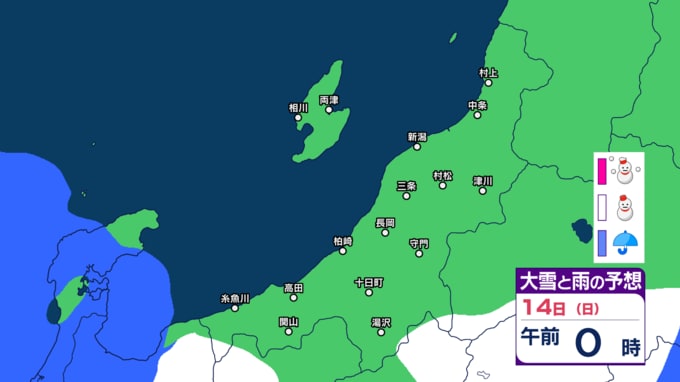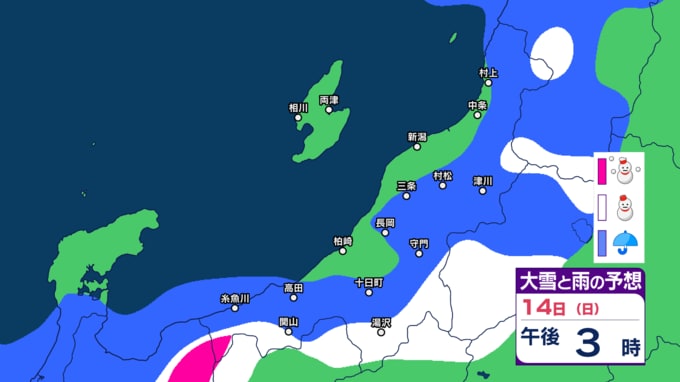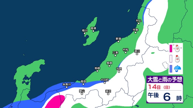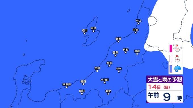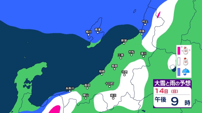 新潟県内は明日10日未明~夕方にかけて落雷や竜巻などの激しい突風、ひょうに注意 12日(金)は平地でも雪か【今後の雨と雪のシミュレーション・9日午後9時更新】 2025年12月9日(火) 21:00 14日(日)の雨と雪のシミュレーション