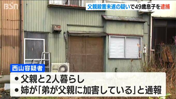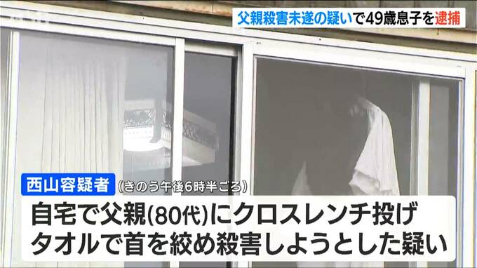 警察や消防によりますと、西山容疑者は9日午後6時半ごろ、自宅で80代の父親にクロスレンチを投げ、さらにタオルで首を絞めて殺害しようとした疑いが持たれています。