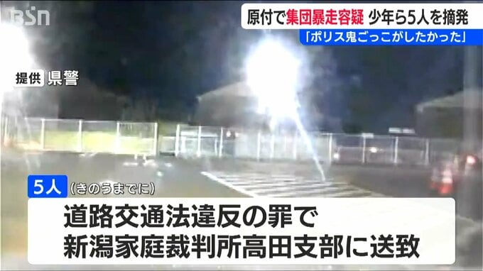 5人は、道路交通法違反の罪で、10日までに新潟家庭裁判所高田支部に送致されました。