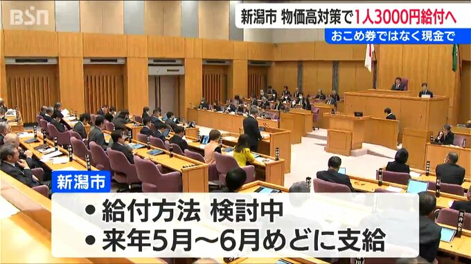 新潟市によりますと、おこめ券にした場合には事業者への手数料がかかることや、農家から直接お米を調達する市民もいる現状を踏まえ、平等にいきわたる現金給付を選んだということです。