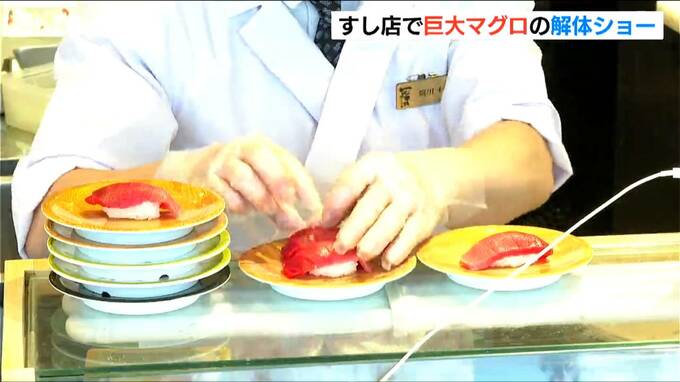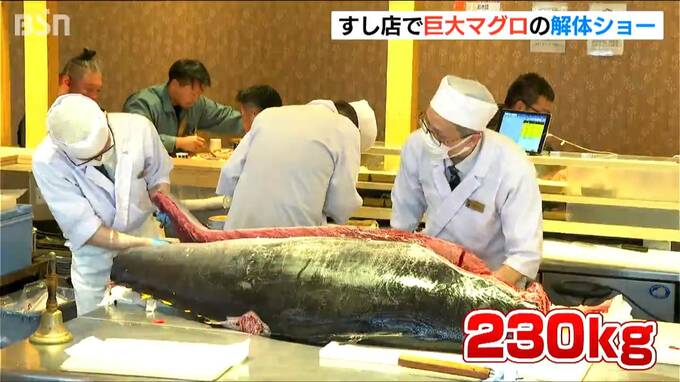 新潟市西区のすし店で“巨大マグロ”の解体ショーが行われ、多くの家族連れでにぎわいました。