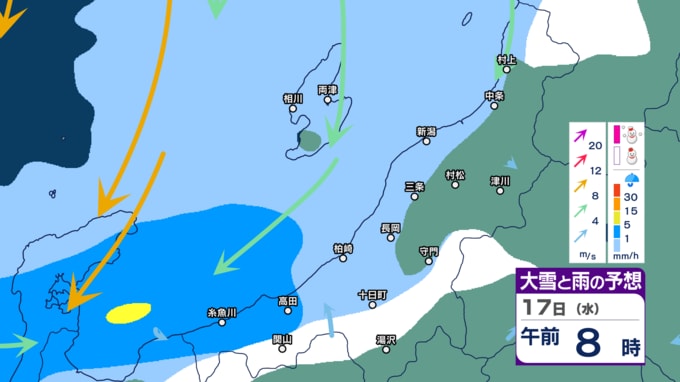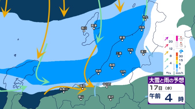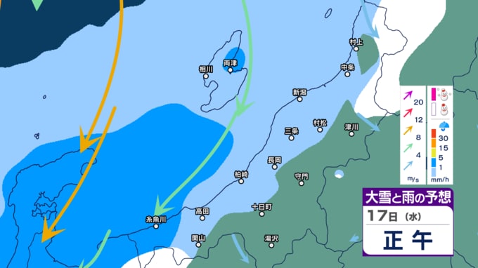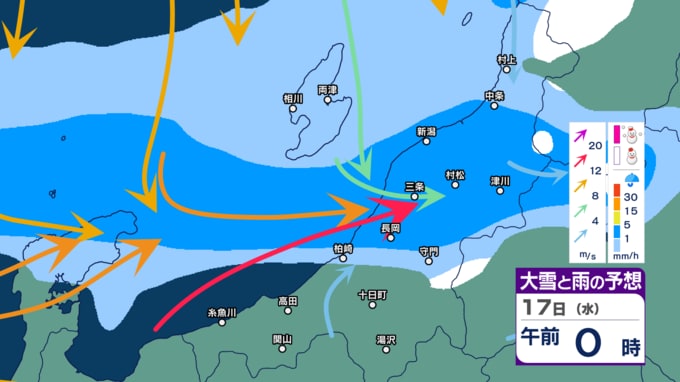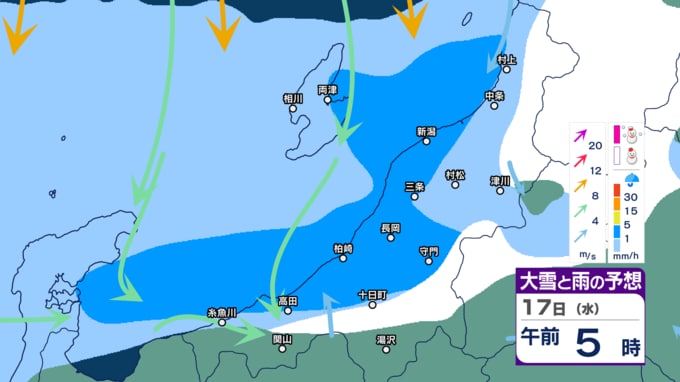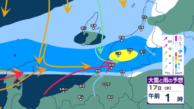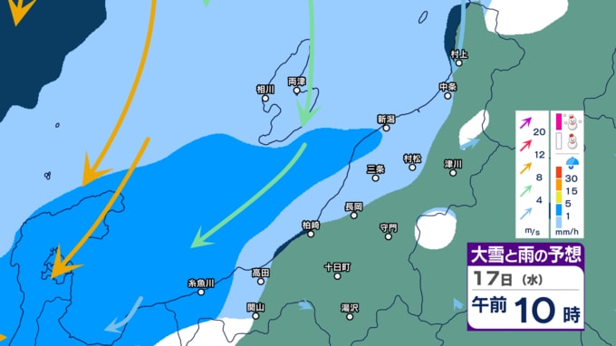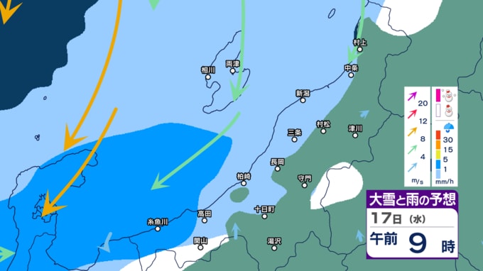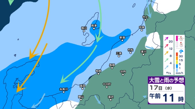 【暴風・高波警戒】新潟県内はきょう14日夕方~夜遅く暴風に警戒 下越・佐渡は高波にも警戒 警報級の大雨の恐れも【今後の雨・雪と風のシミュレーション・14日正午更新】 2025年12月14日(日) 12:03 17日(水)午前0時~正午の雨・雪と風のシミュレーション(1時間ごと)