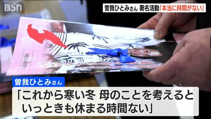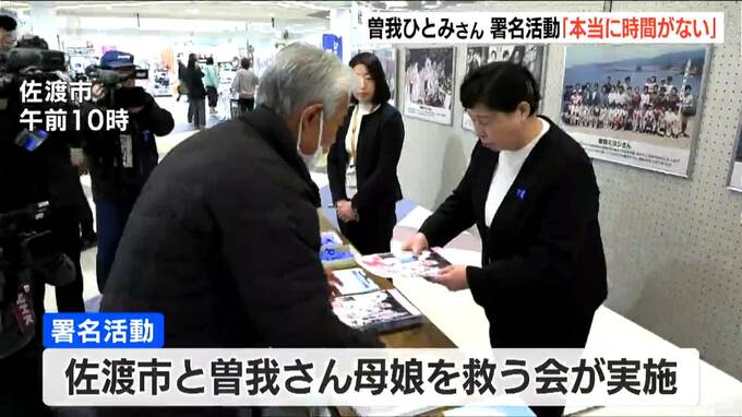 曽我ひとみさんは、佐渡市や曽我さん母娘を救う会のメンバーらとともに、佐渡市佐和田地区のショッピングセンターで署名を呼び掛けました。