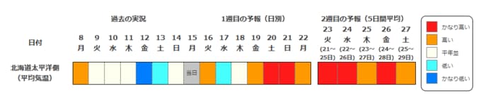 北海道地方:20日ごろから「かなり高くなる見込み」