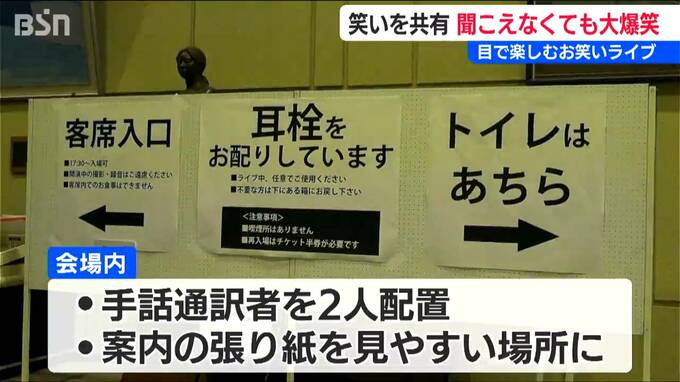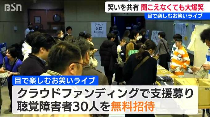 『目で楽しむお笑いライブ』と題された今回のライブは、クラウドファンディングで支援を募り、聴覚障害者30人を無料で招待しました。