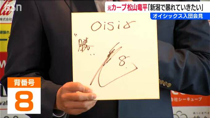 オイシックスで背番号が『8』に決まった松山竜平選手は「勝ちにこだわる野球で、年間50打点を目指したい」と抱負を語りました。