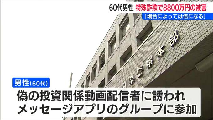 新潟県内に住む60代の男性が、SNS型投資詐欺でおよそ8800万円をだまし取られたとして被害届を提出しました。