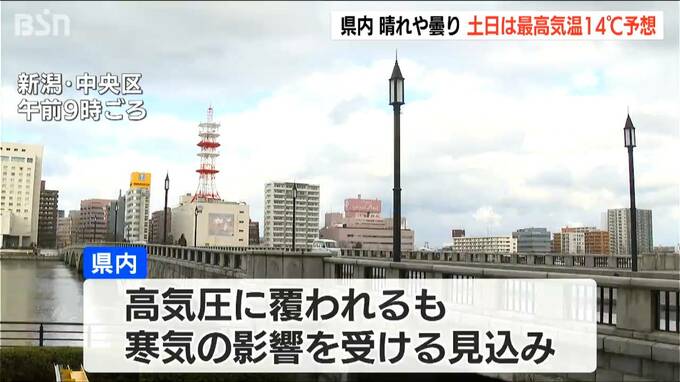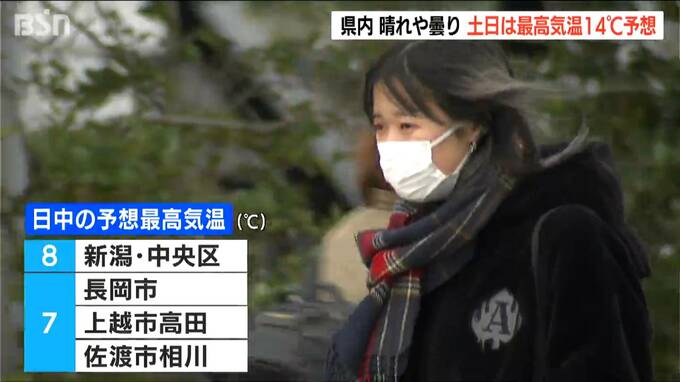 日中の最高気温は新潟市 中央区で8℃、長岡市や上越市 高田で7℃などと予想されています。