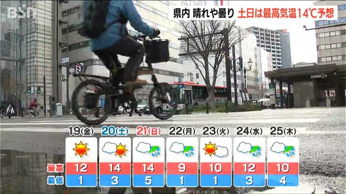 18日の新潟県内は晴れや曇りとなっています。明日以降は気温が上がる見込みで、この土日は最高気温14℃と予想されています。